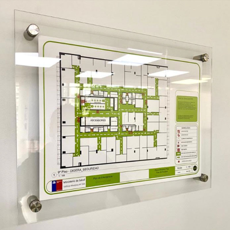 Señalética personalizada en acrílico y otros materiales, perfecta para destacar tu marca o comunicar información.